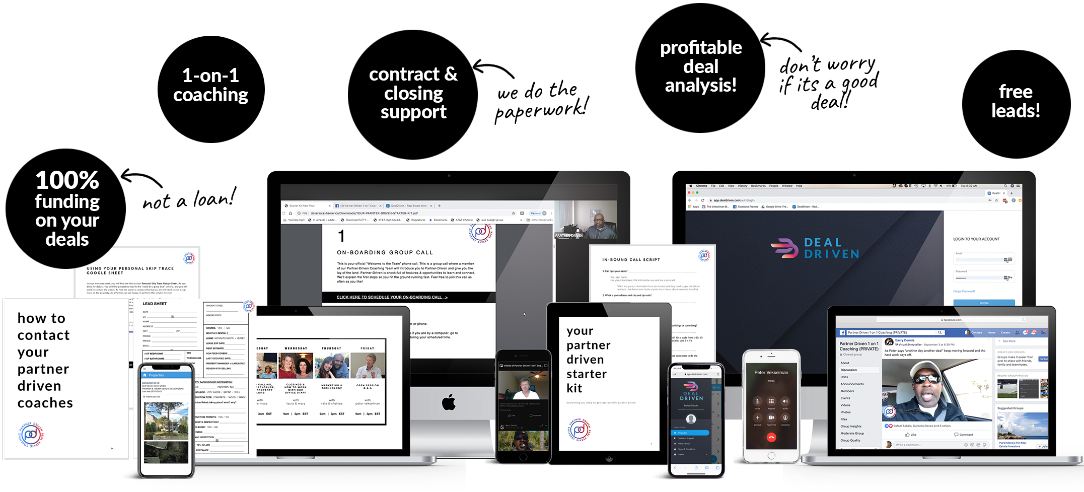 The New Partner Driven Program is a one of a kind program that blends the latest training, coaching, technology, funding and closing office support to help everyday people just like you finally make money in real estate.