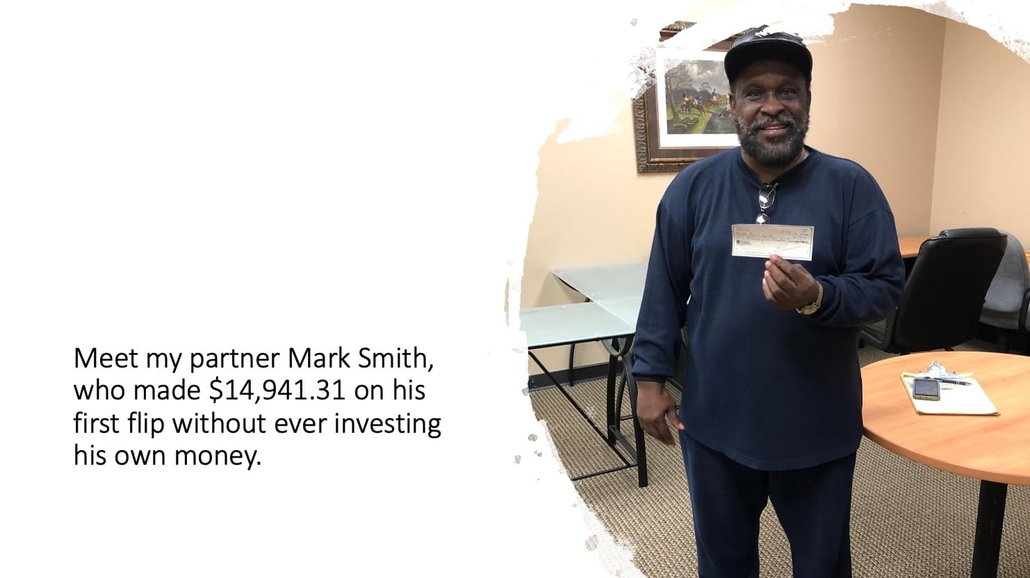 You see, through partnership all you need is an experienced partner that knows how to do deals, is willing to take 100% of the risk by funding the deals, and then splits profits with you 50/50.